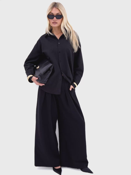 Our Ali Pleated Trousers in Black – timeless women's trousers with elegant pleating, perfect for dressing up or down. Style with the Lucia Long Sleeve Top or Sabrina Shirt.