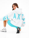 Our Isabel Oversized Hoodie in Black features screen-printed branding in Aqua on the back. Pair with the matching Isabel Jogger Shorts or Soft Leggings.