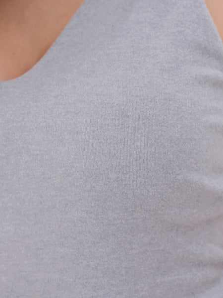 Our Nellie Vest Top in Mid Grey features a form fitting design, with a deep scoop neckline. The fabric is lightweight and soft making it ideal for lounging and everyday. Details include built in bra cups as well as tab branding.