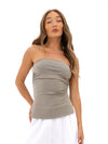 The Solea Bandeau Top in Neutral Grey is part of our Days of Summer collection. Made from a buttery soft fabric, it offers an effortlessly flattering silhouette that crops at the waist. With a sleeveless and ruched design it is perfect for both day and night.